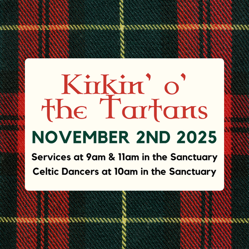 Mark your calendars and prepare your plaid! Our Kirkin’ O’ The Tartans services will be at 9am and 11am on November 2nd. All of the traditional elements will be included, from pipers to Celtic dancers! Don’t forget to bring your piece of Tartan Plaid with you (with name taped or pinned to the back) to the service so that you can participate in the traditional “Calling of the Clans.”