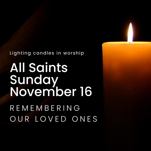 During worship on Sunday, November 10, we will name and recognize those church members who have died this past year. There will be an opportunity during the service for family members to come forward to the chancel area to light a candle in remembrance of loved ones. All are invited to participate in this meaningful time to remember either recent losses or saints who have gone before us.